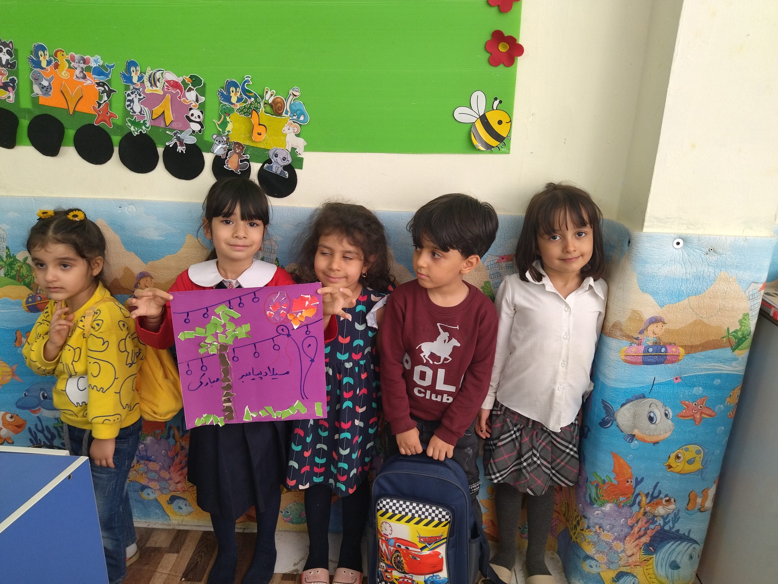 برای میلاد پیامبر ص بچه ها دسته جمعی یک هدیه درست کردند و به مهارت دست ورزی خرده های کاغذ کادو تولد زیبایی هدیه کردند به پیامبر ص .