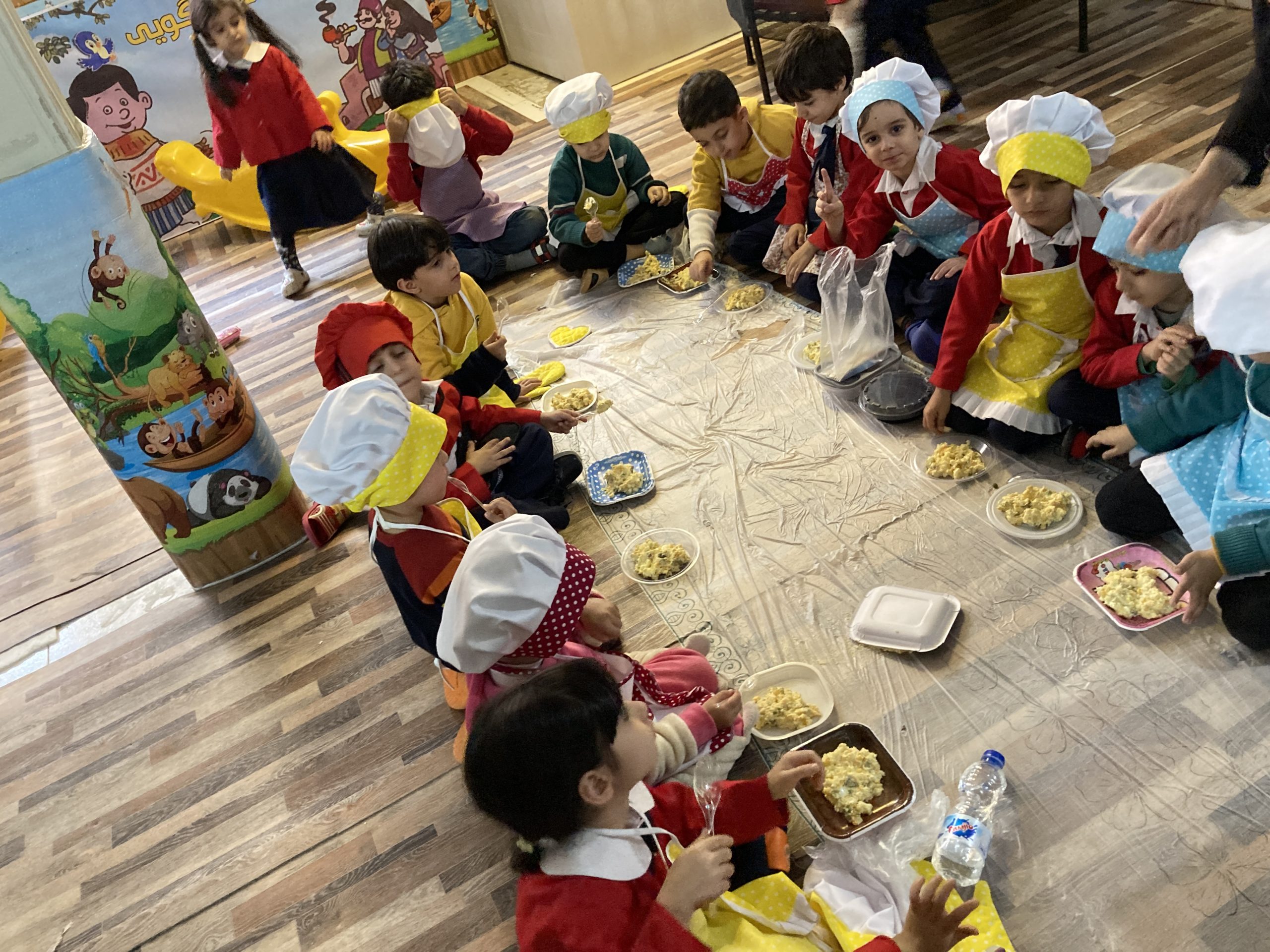 امروز آشپزی داشتیم و بچه ها با کمک ما الویه درست کردند .